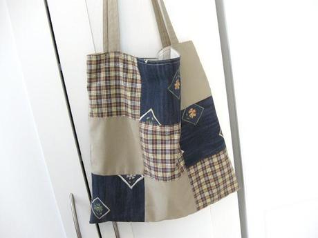 Je dois vous dire que j'ai ce sac depuis près de 4 ans! Je l'utilise pour mes courses, pour transporter les chaussures, ou des jouets pour les enfants... J'aime beaucoup son format très pratique et les ganses assez longues pour le porter à l'épaule. De plus, il arrive souvent que les gens me complimentent sur ce sac..... Je vous dévoile donc aujourd'hui la façon de réaliser vous-même ce sac courtepointe.