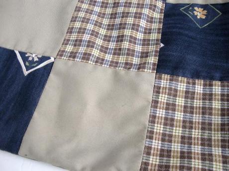 - Agencer et assembler les carrés de tissus selon votre goût ou selon mon modèle avec une couture de 1cm. Parfois pour un sac comme celui-ci, je surjette tout le tour des carrés pour le rendre plus durable.