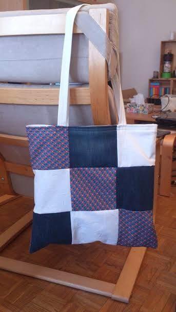 Voici de jolis sacs récups fait par Maya à partir du tuto gratuit ici: http://annymay.net/blogs/articles/7647463-tuto-couture-fabriquer-un-sac-patchwork-avec-des-tissus-recuperes