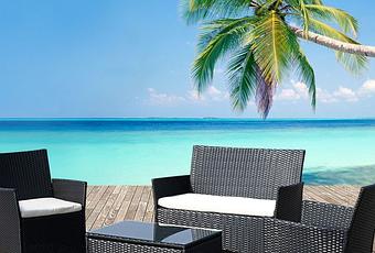 Découvrez ce joli petit salon de jardin complet en résine tressée composé de 4 éléments (un canapé, 2 fauteuils et une table basse) actuellement disponible pour seulement 179€ (livraison incluse) au lieu de 589€ !
