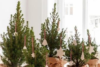 Prévoir un centre de table vert, avec de petits sapins posés dans des sacs de papier kraft, c'est tout moi ! Évitez de les prendre trop grands pour les laisser au centre toute la soirée.