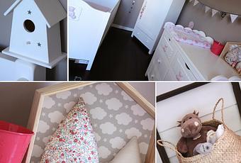 Des jolies couleurs, des accessoires déco chinés, la maman a pensé cette chambre de petite fille dans les moindres détails et le résultat est très réussi.